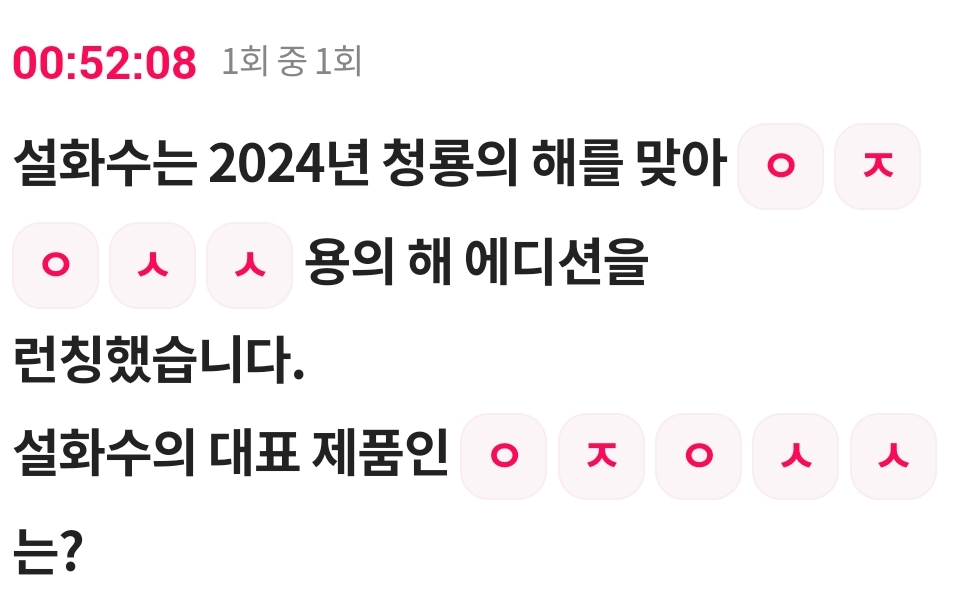 설화수의 대표 제품인 ㅇ ㅈ ㅇ ㅅ ㅅ 는?설화수는 2024년 청룡의 해를 맞아 ㅇ ㅈ ㅇ ㅅ ㅅ 용의 해 에디션을 런칭했습니다.
