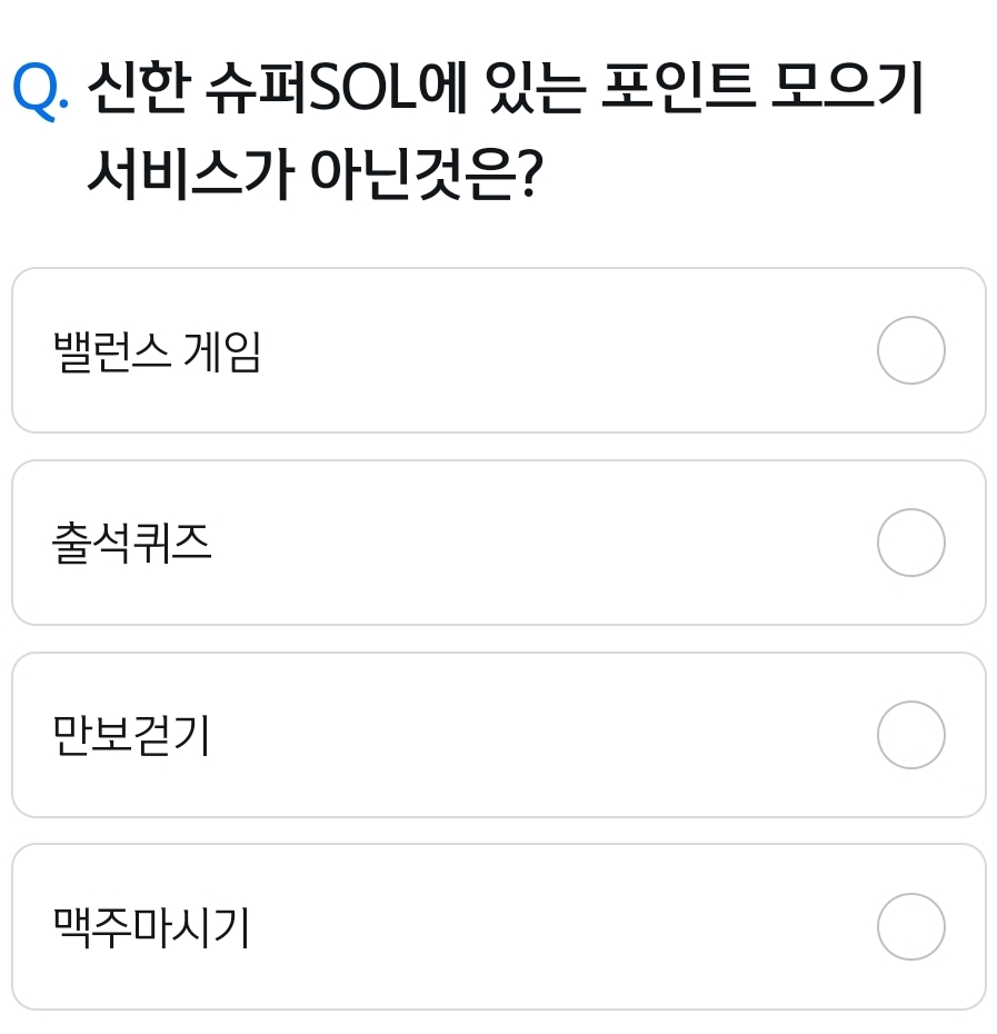 카테고리 없음 신한 슈퍼SOL에 있는 포인트 모으기 서비스가 아닌것은? 밸런스 게임 출석퀴즈 만보걷기 맥주마시기 by 갑자_ 2024. 1. 18. 신한 슈퍼SOL에 있는 포인트 모으기 서비스가 아닌것은?밸런스 게임 출석퀴즈 만보걷기 맥주마시기신한 슈퍼SOL에 있는 포인트 모으기 서비스가 아닌것은?밸런스 게임 출석퀴즈 만보걷기 맥주마시기 정답 복사 → : 맥주마시기쏠퀴즈 - X 반응형 공유하기 게시글 관리 퀴즈 정답(실시간) 카톡으로 공유하기 댓글