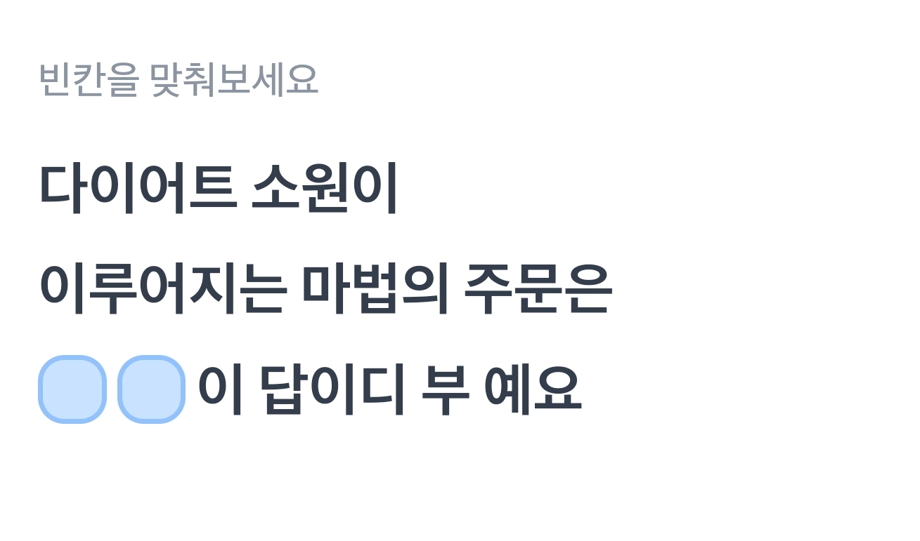 카테고리 없음 다이어트 소원이 이루어지는 마법의 주문은 ㅈㅎ이 답이디 부 예요 ㄷㅇㅇㅌ ㅇㄹㅈ by 갑자_ 2024. 3. 7. 다이어트 소원이이루어지는 마법의 주문은ㅈㅎ이 답이디 부 예요 ㄷㅇㅇㅌ ㅇㄹㅈ다이어트 소원이이루어지는 마법의 주문은ㅈㅎ이 답이디 부 예요 ㄷㅇㅇㅌ ㅇㄹㅈ 정답 복사 → : 다이어트정답 복사 → : 오렌지정답 복사 → : 지흡 반응형 공유하기 게시글 관리 퀴즈 정답(실시간) 카톡으로 공유하기 댓글