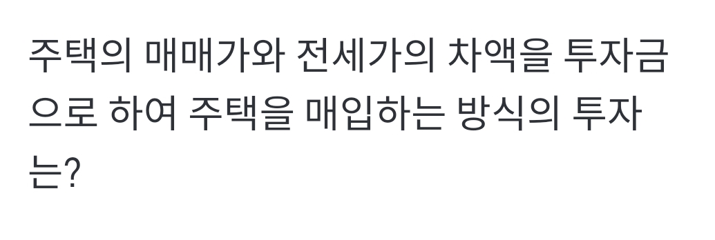주택의 매매가와 전세가의 차액을 투자금