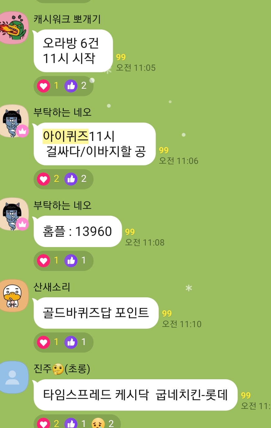 #캐시워크 #오퀴즈 #토스 #앱테크 #퀴즈정답 #캐쉬백 #캐시닥 #타임스프레드 정답 서로 알려주고 있어요 오셔서 같이 해요 무료이며 비번 없어요