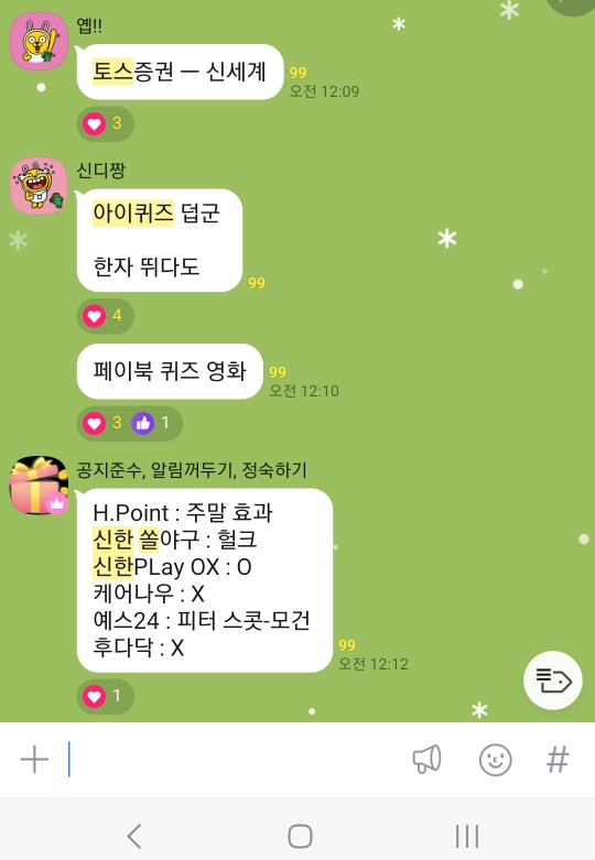 토스 증권 행운 퀴즈 및 캐시워크 캐시닥 여러가지 퀴즈 정답만 공유하고 있어요 단톡방 오셔서 참여 하면 좋을듯 합니다.