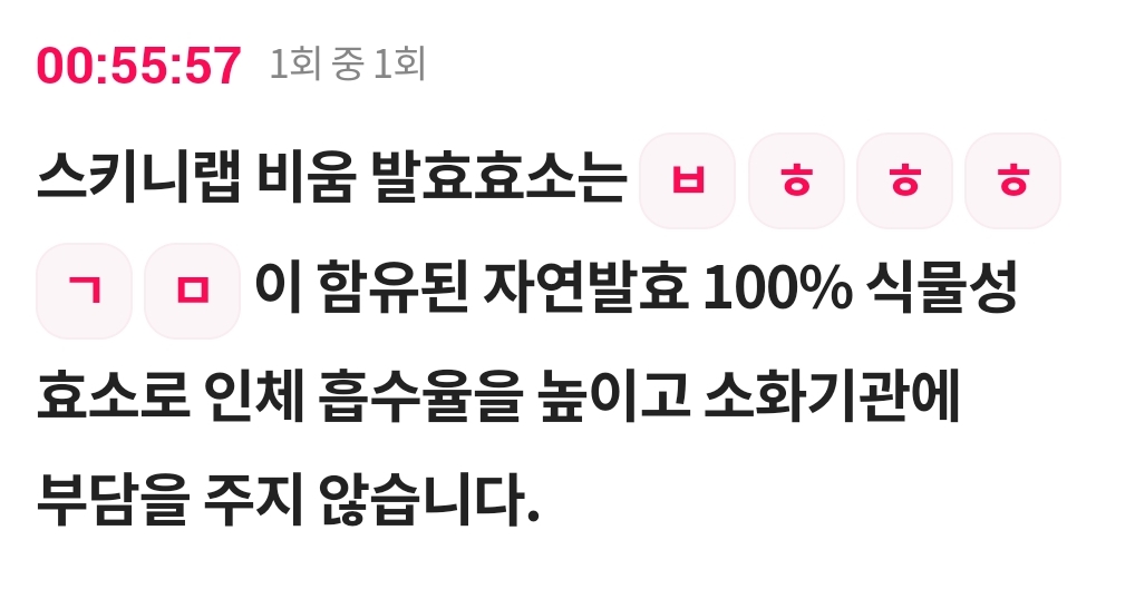 스키니랩 비움 발효효소는 ㅂ ㅎ ㅎ ㅎ ㄱ ㅁ 이 함유된 자연발효 100% 식물성 효소로 인체 흡수율을 높이고 소화기관에 부담을 주지 않습니다.