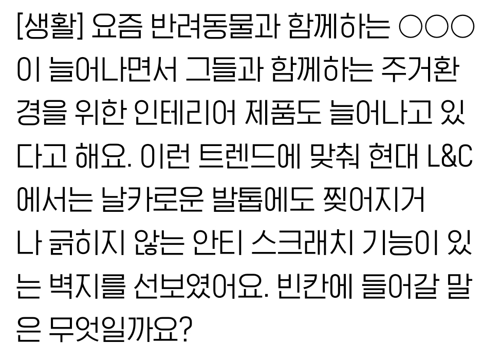 는 벽지를 선보였어요. 빈칸에 들어갈 말