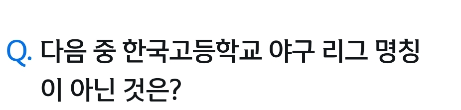 Q. 다음 중 한국고등학교 야구 리그 명칭 이 아닌 것은? 2023년 4월 19일