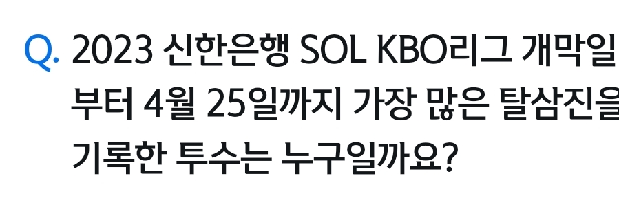 2023 신한은행 SOL KBO리그 개막일부터 4월 25일까지 가장 많은 탈삼진을기록한 투수는 누구일까요?