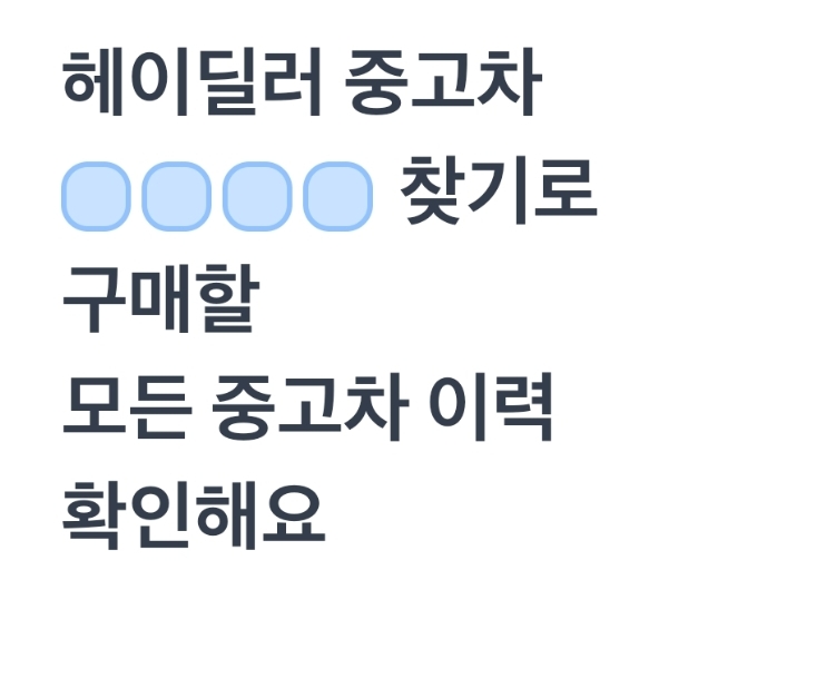 카테고리 없음 토스 헤이딜러 중고차 찾기로 OOOO구매할 모든 중고차 이력 확인해요 구매할 중고차의 OO만 입력하면 차의 숨은이력을 확인할 수 by 갑자_ 2023. 6. 12. 토스 행운 퀴즈 구매할 중고차의 OO만 입력하면 차의 숨은이력을 확인할 수 있어요정답 복사 → : 번호토스 헤이딜러 중고차 찾기로 OOOO구매할 모든 중고차 이력 확인해요정답 복사 → : 숨은이력 반응형 공유하기 게시글 관리 퀴즈 정답(실시간) 카톡으로 공유하기 댓글