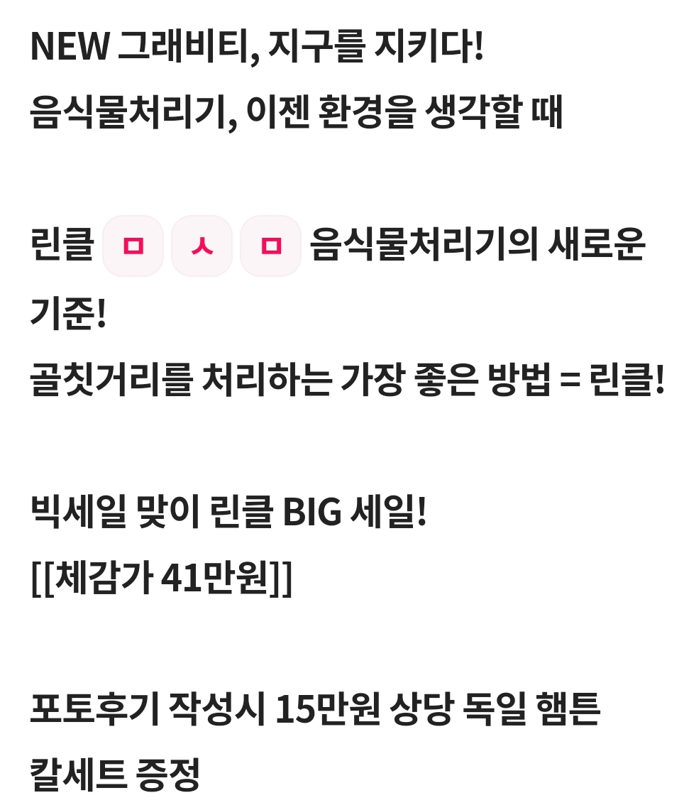 린클 ㅁ ㅅ ㅁ 음식물처리기의 새로운 기준!
