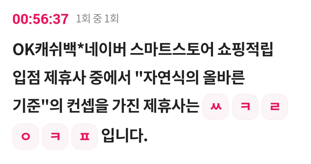 OK캐쉬백*네이버 스마트스토어 쇼핑적립 입점 제휴사 중에서 "자연식의 올바른 기준"의 컨셉을 가진 제휴사는 ㅆ ㅋ ㄹ ㅇ ㅋ ㅍ 입니다.