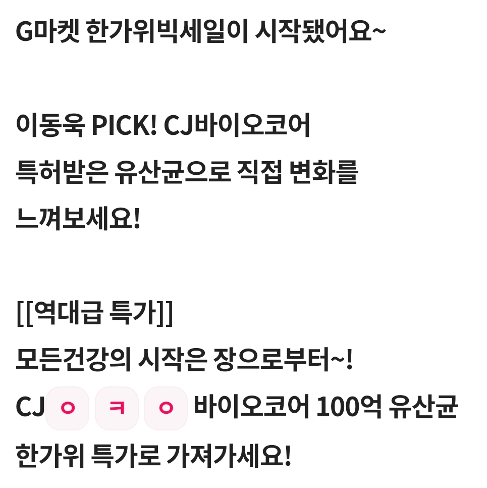 CJㅇ ㅋ ㅇ 바이오코어 100억 유산균
