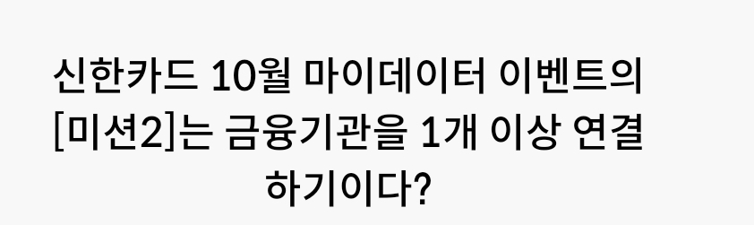 카테고리 없음 신한카드 10월 마이데이터 이벤트의 [미션2]는 금융기관을 1개 이상 연결 하기이다? by 갑자_ 2023. 10. 3. 신한카드 10월 마이데이터 이벤트의[미션2]는 금융기관을 1개 이상 연결하기이다?신한카드 10월 마이데이터 이벤트의[미션2]는 금융기관을 1개 이상 연결하기이다?정답 복사 → : 적토마 반응형 공유하기 게시글 관리 퀴즈 정답(실시간) 카톡으로 공유하기 댓글