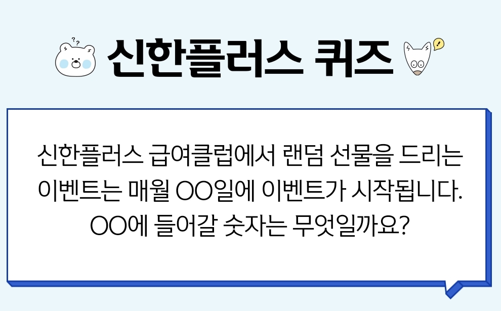 카테고리 없음 신한플러스 급여클럽에서 랜덤 선물을 드리는 이벤트는 매월 00일에 이벤트가 시작됩니다. O0에 들어갈 숫자는 무엇일까요? by 갑자_ 2023. 10. 25. 신한플러스 급여클럽에서 랜덤 선물을 드리는이벤트는 매월 00일에 이벤트가 시작됩니다.O0에 들어갈 숫자는 무엇일까요?신한플러스 급여클럽에서 랜덤 선물을 드리는이벤트는 매월 00일에 이벤트가 시작됩니다.O0에 들어갈 숫자는 무엇일까요?정답 복사 → : 10 반응형 공유하기 게시글 관리 퀴즈 정답(실시간) 카톡으로 공유하기 댓글