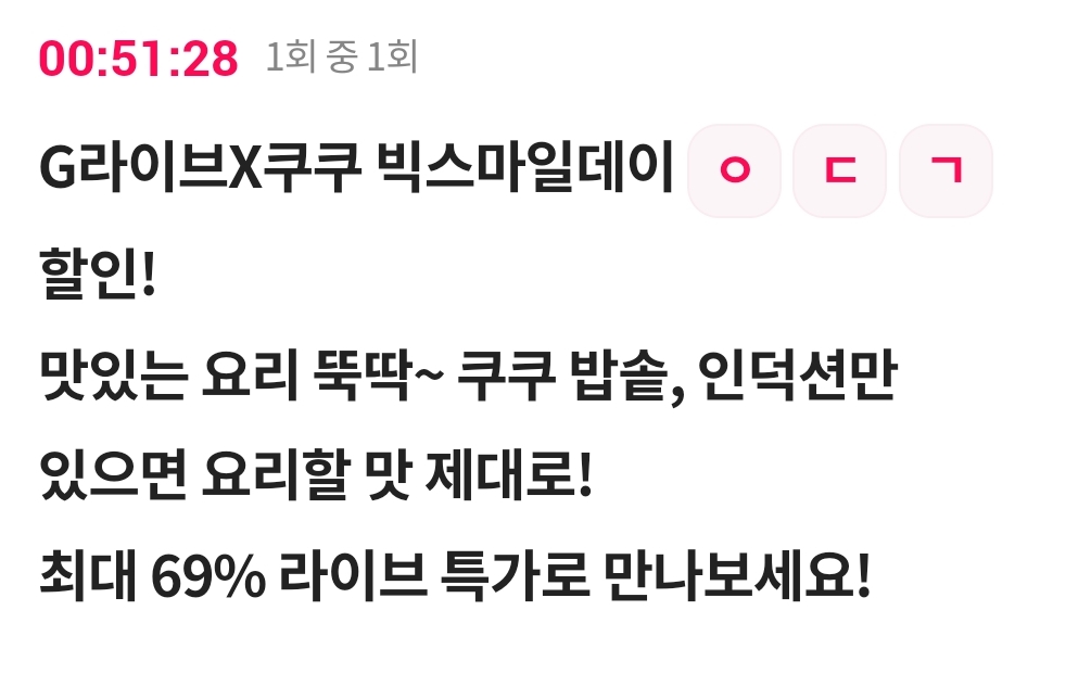 카테고리 없음 G라이브X쿠쿠 빅스마일데이 ㅇ ㄷ ㄱ 할인! 맛있는 요리 뚝딱~ 쿠쿠 밥솥, 인덕션만 있으면 요리할 맛 제대로! 최대 69% 라이브 특가로 만 by 갑자_ 2023. 11. 15. G라이브X쿠쿠 빅스마일데이 ㅇ ㄷ ㄱ 할인!맛있는 요리 뚝딱~ 쿠쿠 밥솥, 인덕션만 있으면 요리할 맛 제대로!최대 69% 라이브 특가로 만나보세요!G라이브X쿠쿠 빅스마일데이 ㅇ ㄷ ㄱ 할인!맛있는 요리 뚝딱~ 쿠쿠 밥솥, 인덕션만 있으면 요리할 맛 제대로!최대 69% 라이브 특가로 만나보세요!정답 복사 → : 역대급 반응형 공유하기 게시글 관리 퀴즈 정답(실시간) 카톡으로 공유하기 댓글