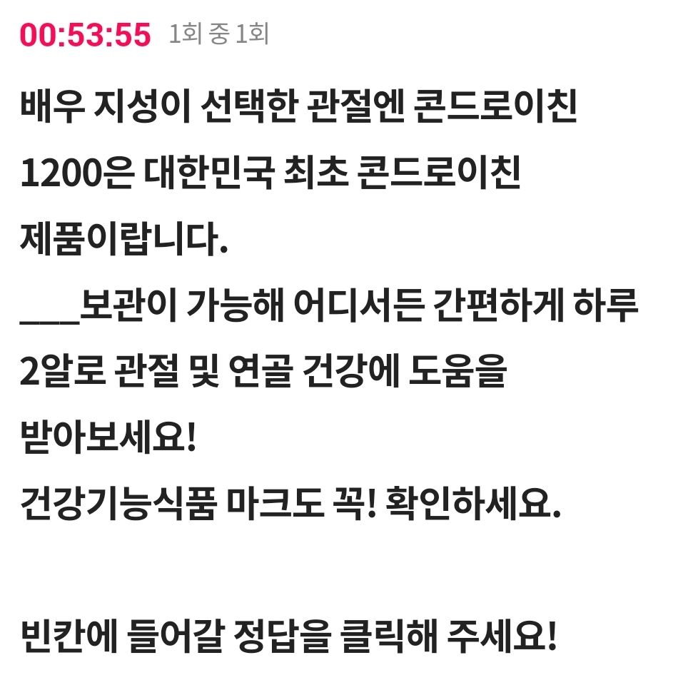 배우 지성이 선택한 관절엔 콘드로이친 1200은 대한민국 최초 콘드로이친 제품이랍니다.