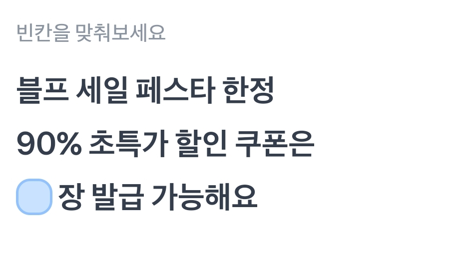카테고리 없음 토스 블프 세일 페스타 한정 90% 초특가 할인 쿠폰은 0장발급 가능해요 by 갑자_ 2023. 11. 24. 토스 블프 세일 페스타 한정 90% 초특가 할인 쿠폰은 0장발급 가능해요정답 : 3, 4, 평생토스 블프 세일 페스타 한정 90% 초특가 할인 쿠폰은 0장발급 가능해요정답 복사 → : 정답 : 3, 4, 평생 반응형 공유하기 게시글 관리 퀴즈 정답(실시간) 카톡으로 공유하기 댓글