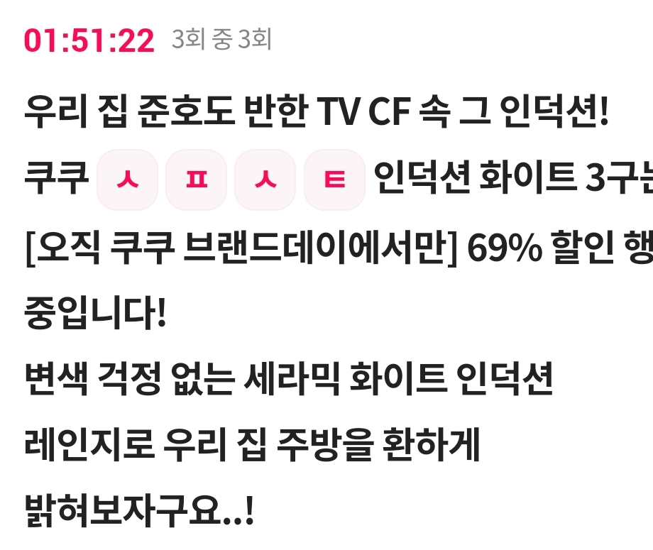 쿠쿠 ㅅ ㅍ ㅅ ㅌ 인덕션 화이트 3구는 [오직 쿠쿠 브랜드데이에서만] 69% 할인 행사 중입니다!
